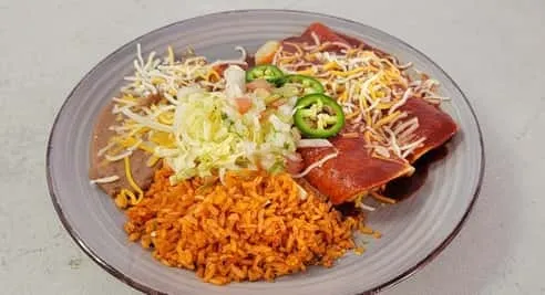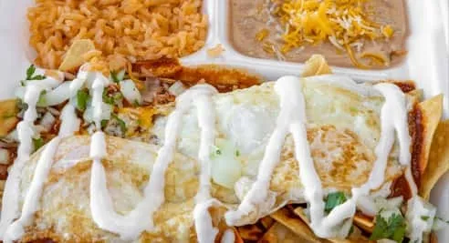 Choice Of Meat, Rice, Beans, Cheese, Sour Cream. Enchilada Style.